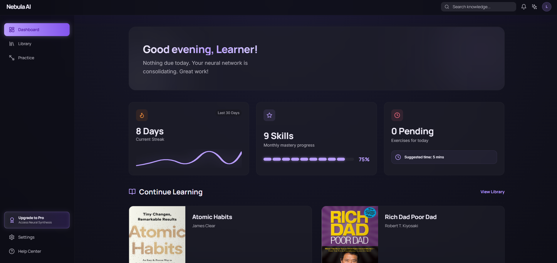 Analyze books, train soft skills, and solve practical challenges every day with Nebula AI’s smart trainer.